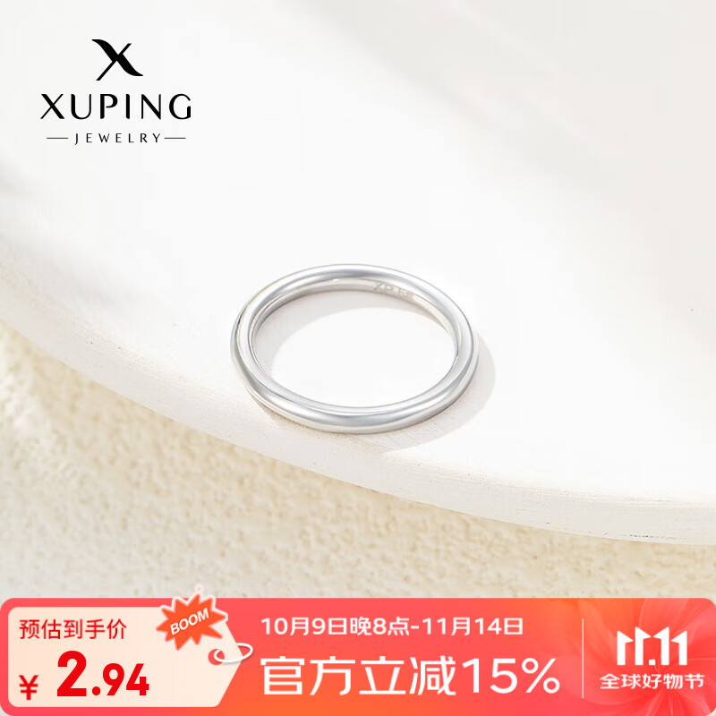 包邮 XUPING旭平首饰气质时尚素圈戒指情侣小众ins风日常通勤简约送女朋友礼物 素圈戒指【7码-窄版约2mm】